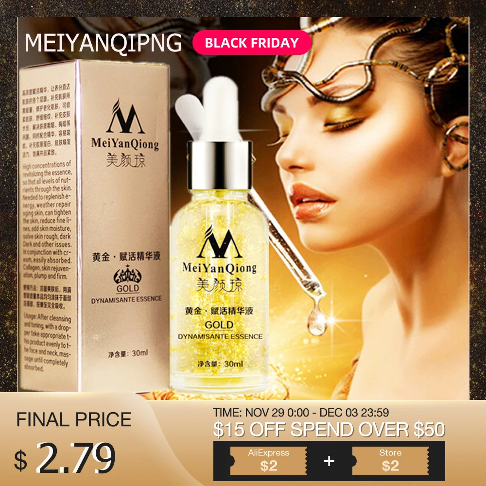 24 К золото уход за кожей лица Сыворотка увлажняющий эссенция крем отбеливание день кремы для век анти против морщин и старения укрепляющий ...