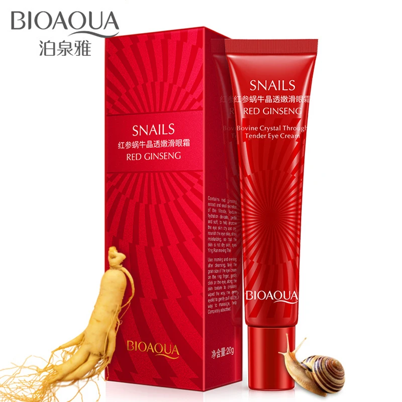 BIOAQUA, красный женьшень, экстракт улитки, крем для глаз, против морщин, против старения, удаляет темные круги, отечность, Восстанавливающий увлажняющий крем для век, крем