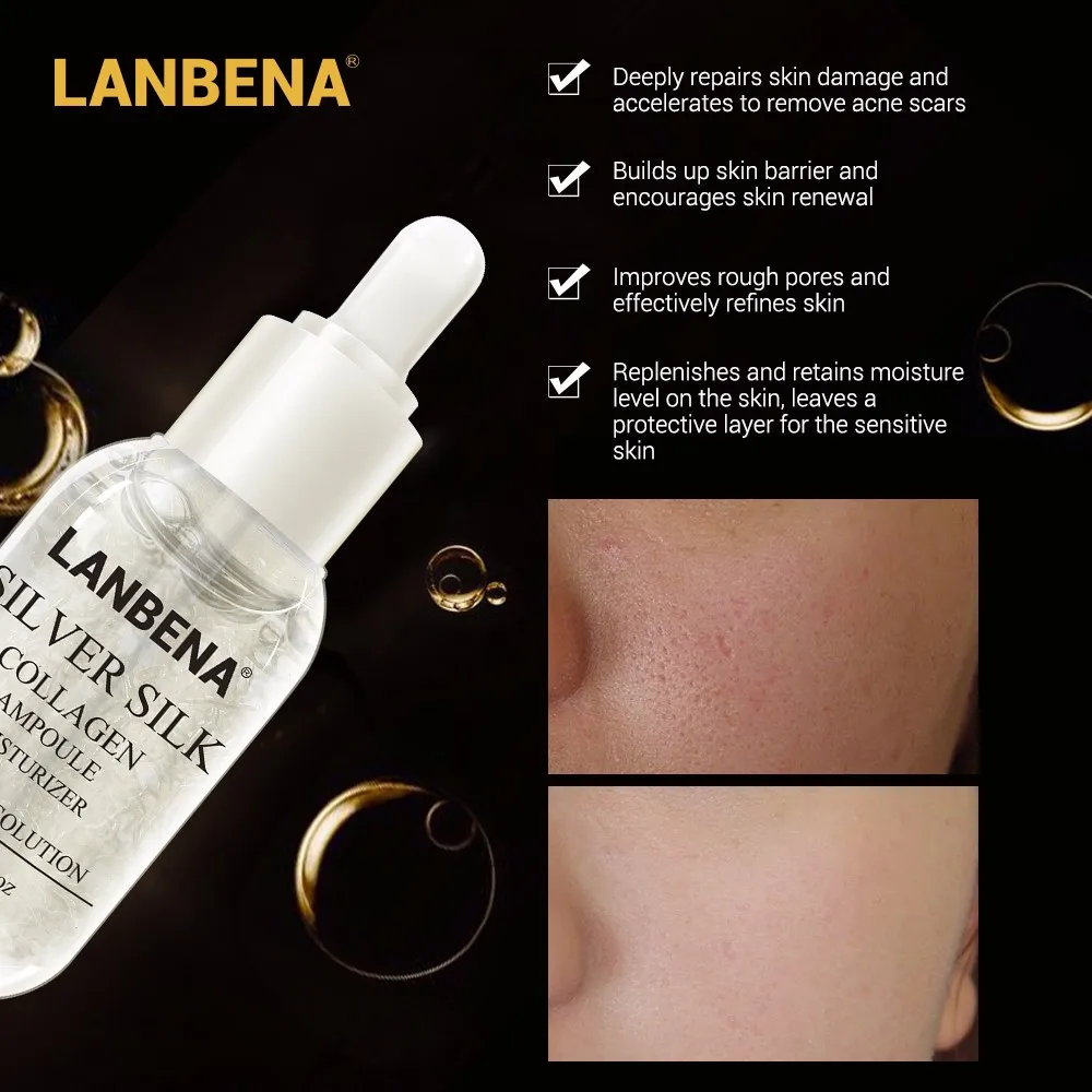 LANBENA 24K Серебряная шелковая ампульная Сыворотка с коллагеном, Антивозрастная осветляющая сыворотка, увлажняющая, отбеливающая, укрепляющая, для ухода за кожей лица, serumTSLM1