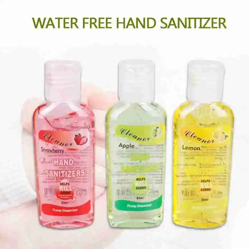 60 мл дорожный Портативный Миниатюрный антисептик для рук, одноразовый, без очистки, без воды, прозрачный, против бактерий, увлажняющая бутылка с ароматом фруктов