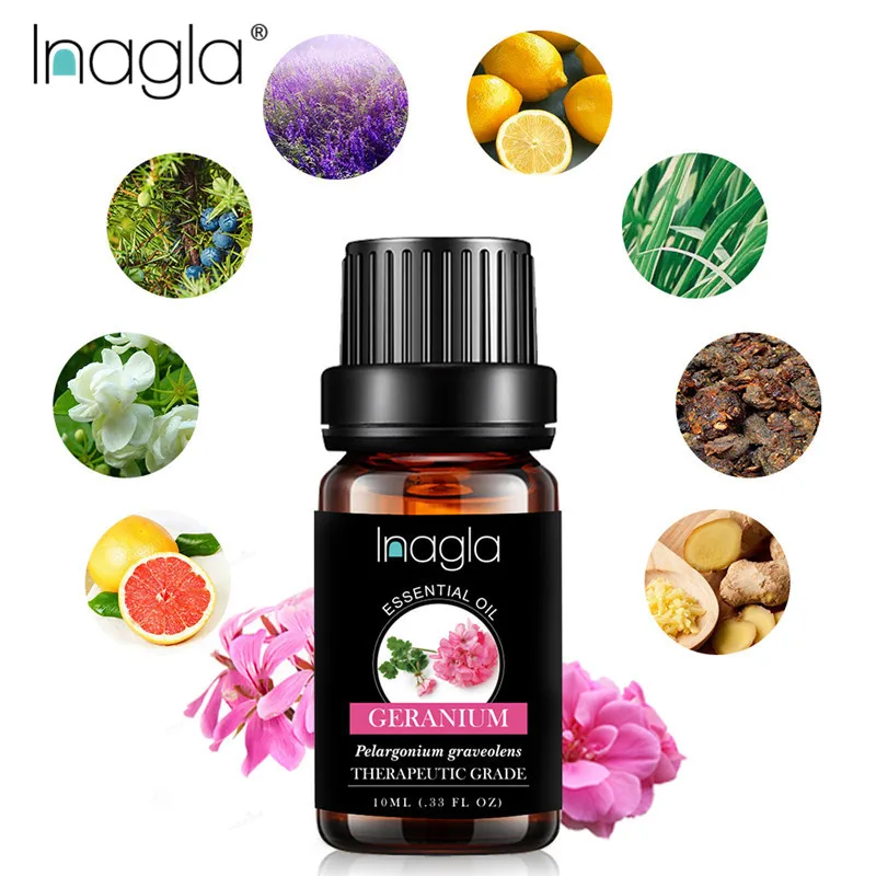Inagla Эфирное масло герани чистое натуральное 10 мл чистые эфирные масла Ароматерапия диффузоры масло снимает стресс Домашний Уход на воздухе