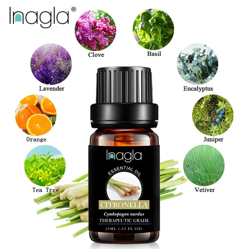 Inagla Цитронелла 10 мл эфирные масла 100% чистые натуральные чистые эфирные масла для ароматерапии диффузоры масло домашний уход за воздухом