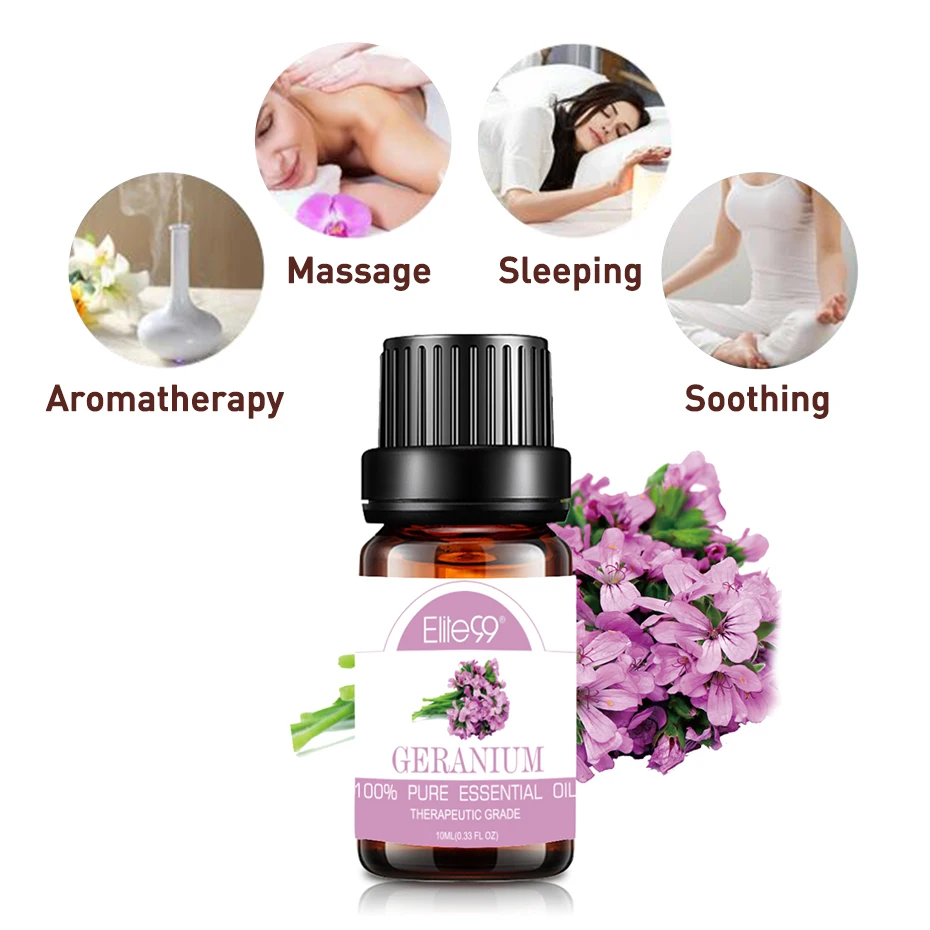 Elite99, 10 мл, Эфирные Масла Герани для ароматерапии, увлажнитель, масло для снятия стресса, помогает спящему массажу тела, эфирное масло