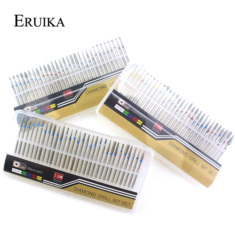 ERUIKA 30 шт. Алмазный гвоздь сверло комплект фреза Burr резак чистые файлы для электрических Маникюр машина аксессуар