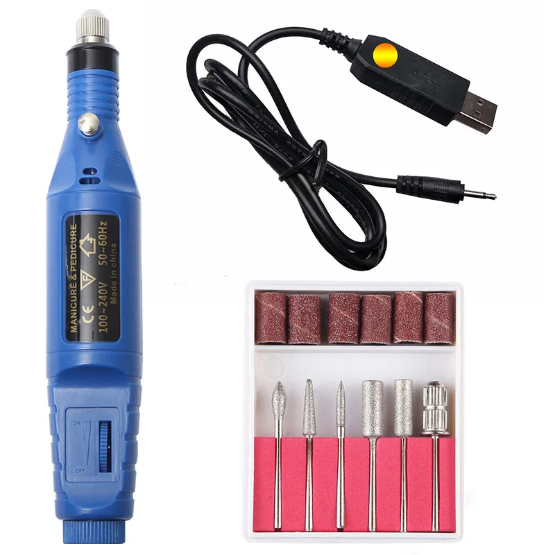 1 комплект, 5 В, USB, один низкоскоростной электрический сверлильный станок для ногтей, маникюрный станок, пилка для ногтей, сверла для ногтей, ...