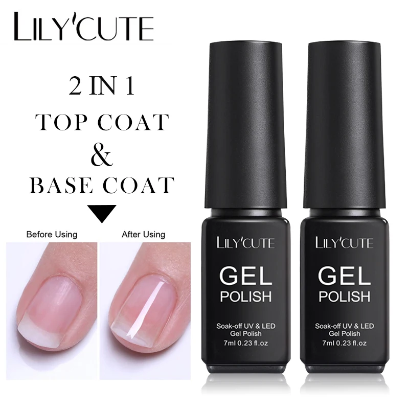 LILYCUTE 2 в 1 базовое верхнее покрытие Гель-лак УФ, прозрачный гель для ногтей длительное впитывание не протирать грунтовка Цвет гель для ногтей...