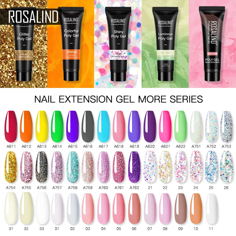ROSALIND блеск полигель 15 мл/30 мл УФ-гель лак для ногтей лак для наращивания ногтей дизайн все для маникюра Топ основа