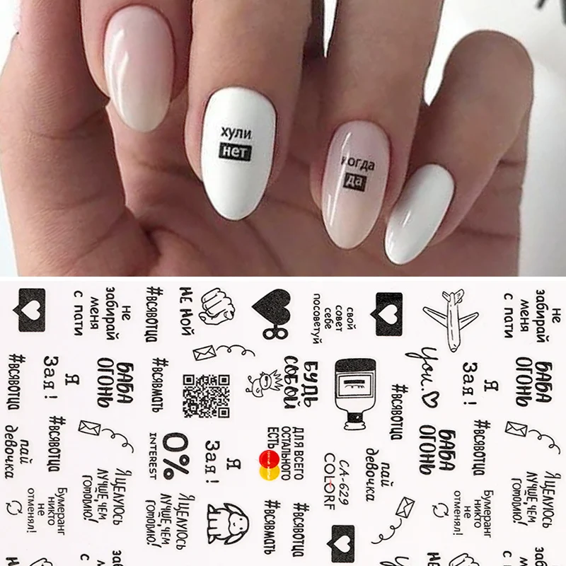 3 шт. дизайн с буквами 3D стикер для ногтей русская серия Переводные красивые аксессуары для дизайна ногтей наклейки украшения DIY адхенсивные советы