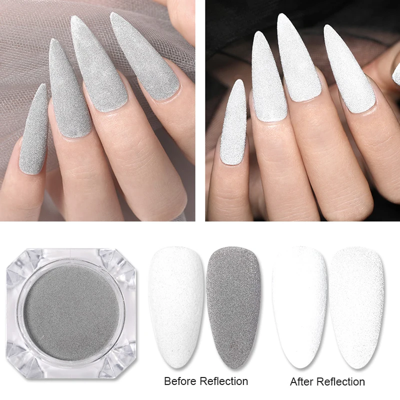 8 г светится в темноте, отражающая пудра для ногтей, блестящая, серая, белая, ошеломляющая, вечерние, пигментные, для дизайна ногтей, сделай сам, украшения для ногтей