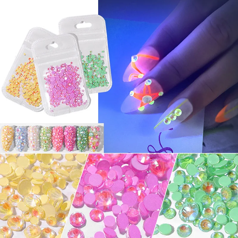 Светящиеся Стразы для ногтей, Кристальный ноготь маникюрный-разные размеры, художественные стразы, украшения, 3D блеск, блестки, бриллиант, с...