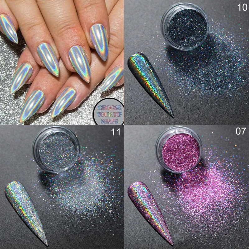 Голографическая пудра на ногтях Лазерная Серебряная блестящая Хромовая пудра для ногтей DIP Shimmer Гель-лак хлопья для маникюра пигмент
