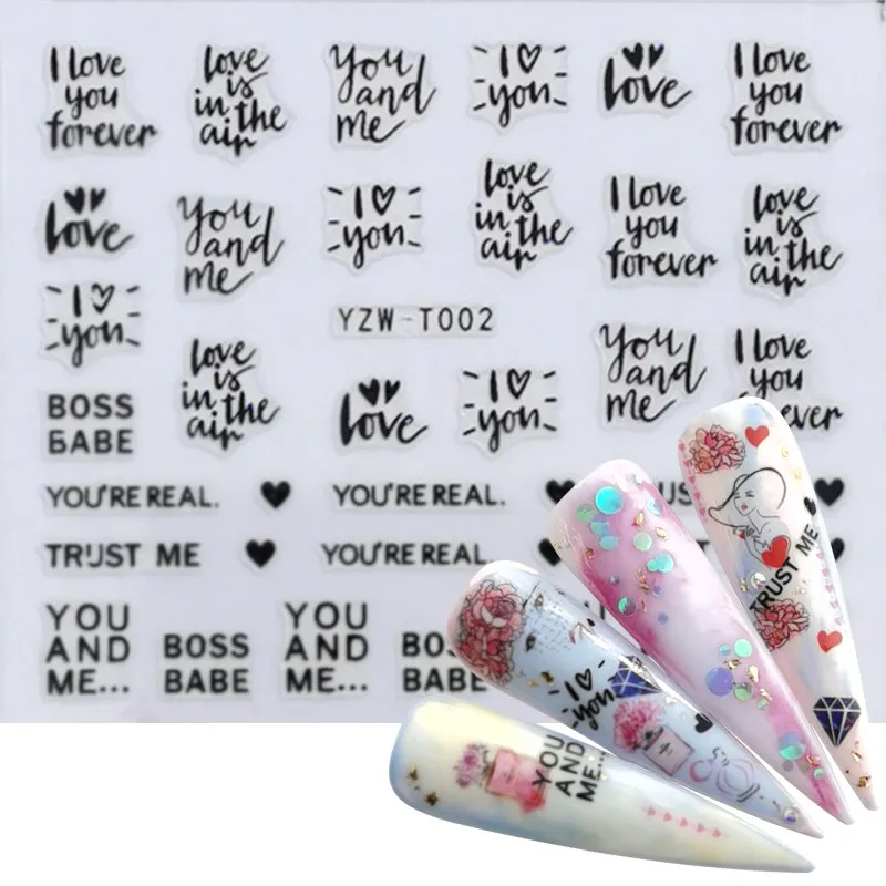 YWK 2020 новый стикер для ногтей черный и золотой цветок/Любовь/кружево/письмо лоза Алмазное ожерелье Гелевый лак слайдер аксессуары для дизайна ногтей наклейки