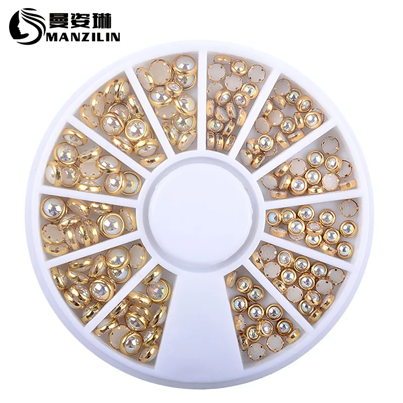 3d Блеск для ногтей Стразы обертывание жемчуг AB Красочные мм 2 мм 3 мм колеса золотые металлические шпильки DIY красота украшения для ногтей