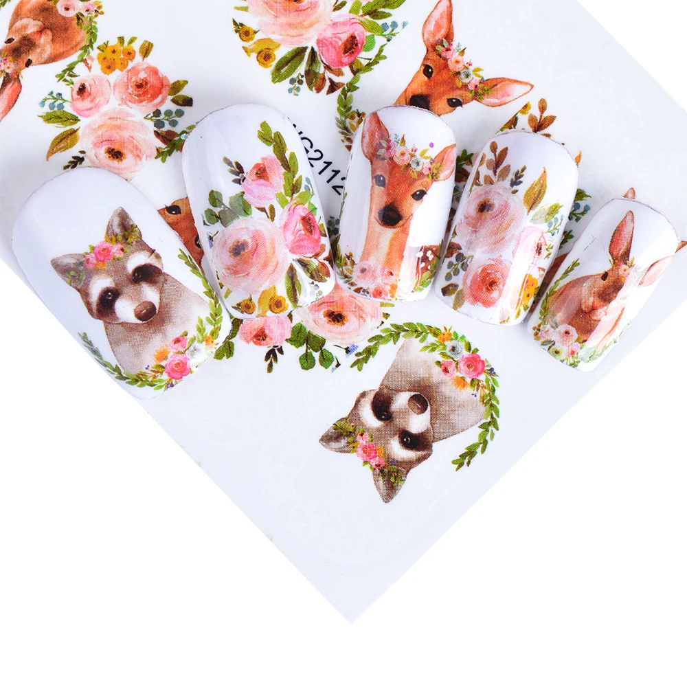 Полная красота 1 шт. животные Дизайн Наклейка на ногти водная олень/кролик/лошадь милые полный Типсы Наклейки Красочные аксессуары для дизайна ногтей CHWG