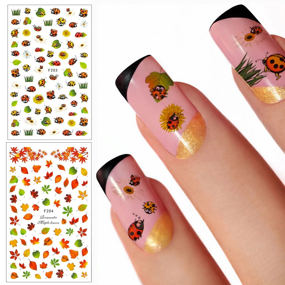 Новые Полные Обертывания 3D наклейки для ногтей осенняя Тема Слайдеры для ногтей советы Кленовый лист цветок Божья коровка шаблон стикер дизайн ногтей украшение