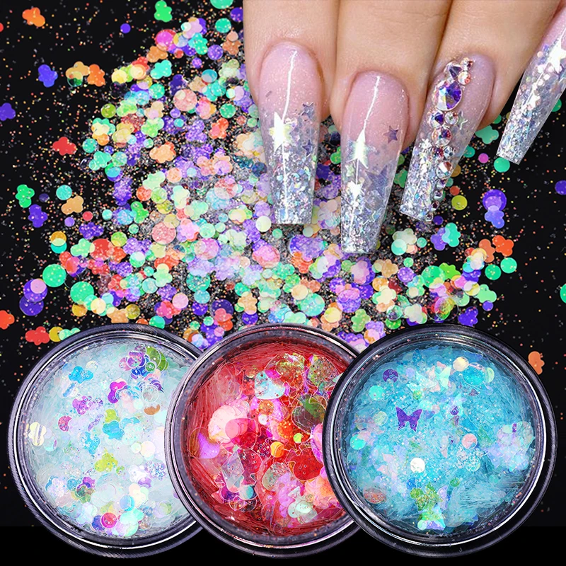 1 коробка голографическая красочная пудра для ногтей неровные блестки бабочка хлопья украшения для ногтей маникюр хром пигмент Декор