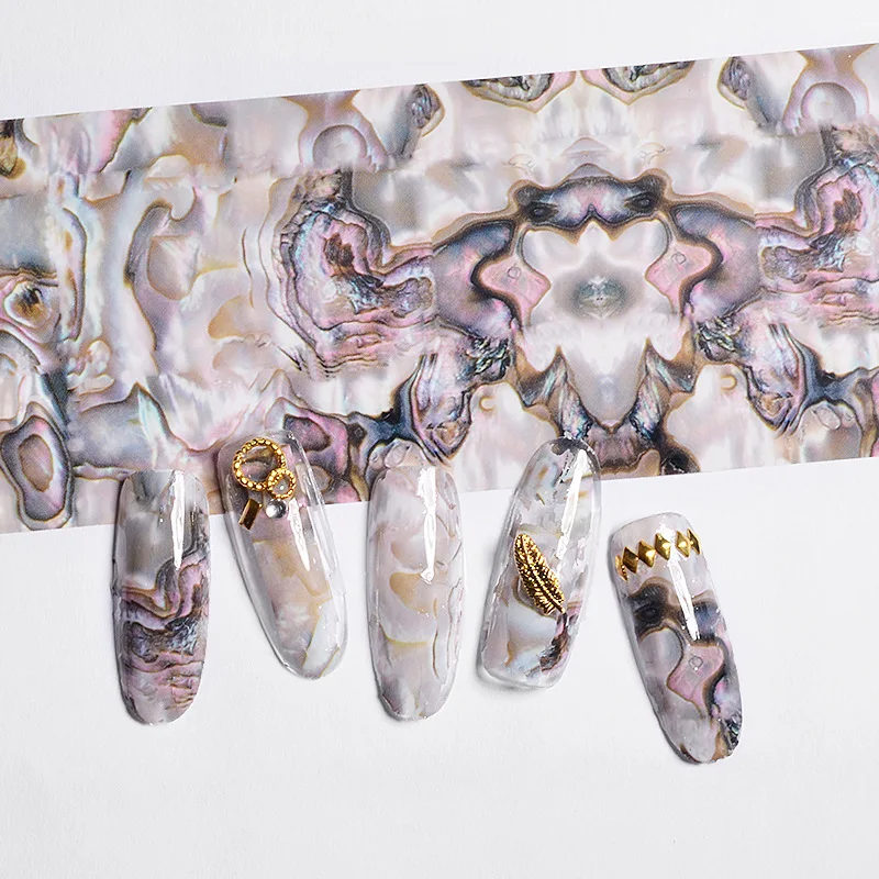 3D 4*20 см Океанский стиль оболочки Абалон шаблон для ногтей Фольга s градиент мраморный дизайн Фольга s дизайн ногтей Термотрансферная фольга