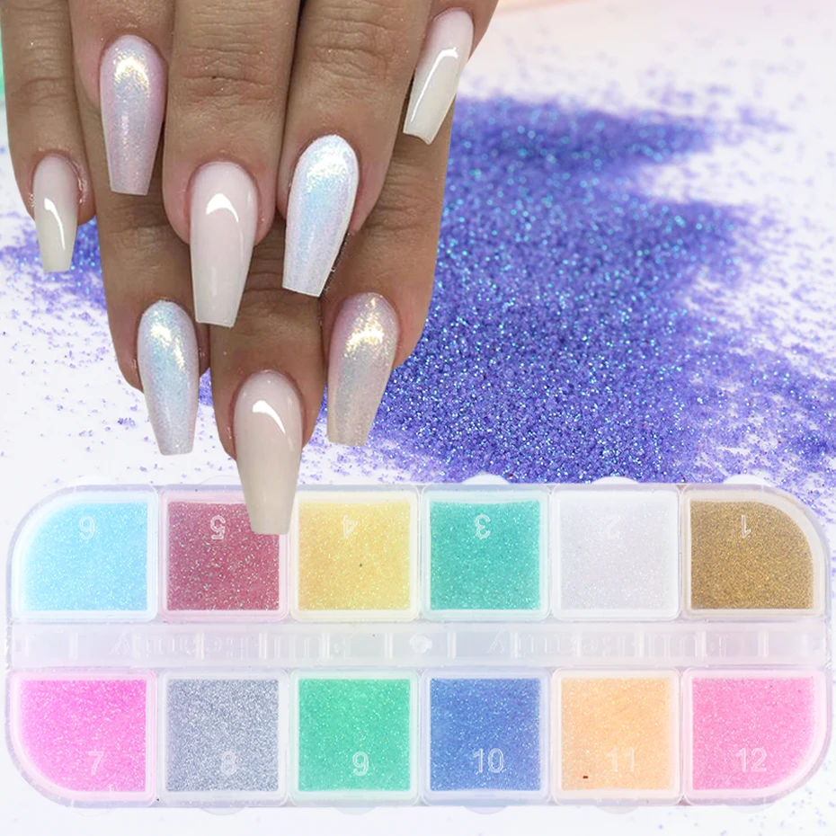1 коробка, 2 мм, одноцветные Блестки для ногтей, Блестящие Блестки для ногтей, голограмма для дизайна ногтей, блестящие 12 видов цветов на выбор