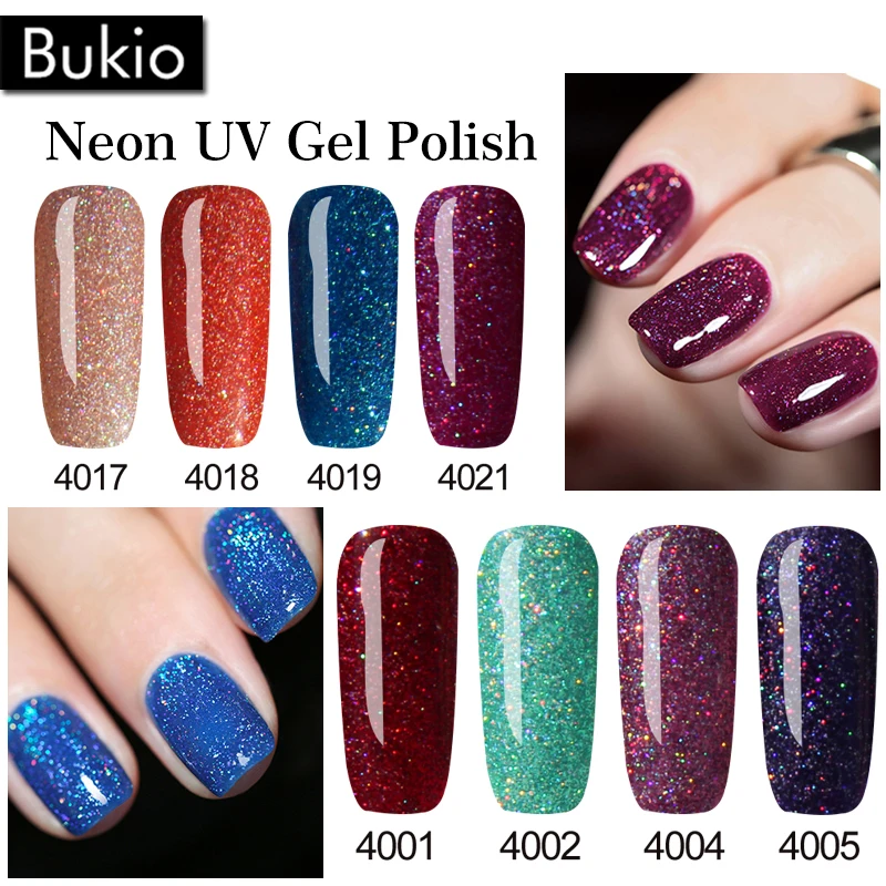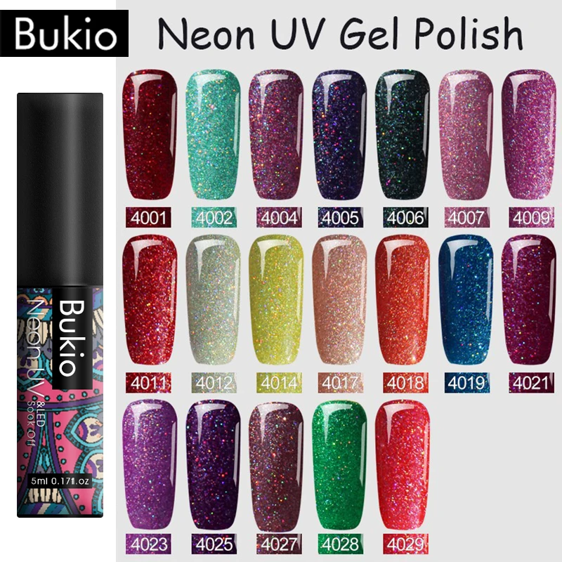 Bukio 5 мл блеск УФ набор гель-лаков для ногтей голографические блестки замочить от УФ светодиодный Гель-лак для ногтей Полупостоянный Блестящ...