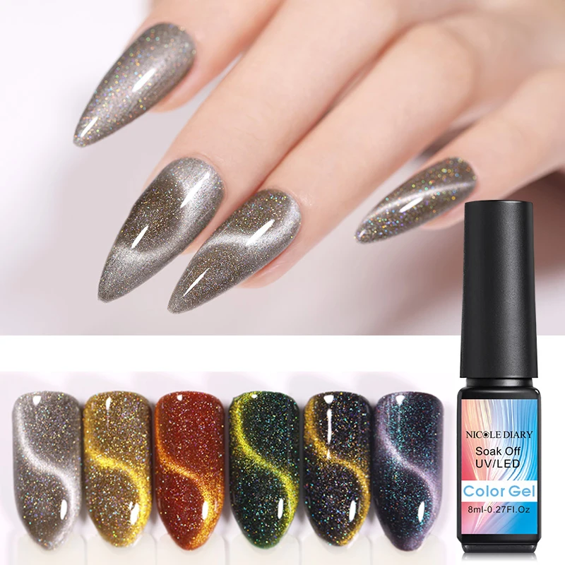 NICOLE DIARY 8 мл голографический УФ-гель для ногтей кошачьи глаза дизайн ногтей гель лак Магнитный Магнит замочить от маникюра гель лак