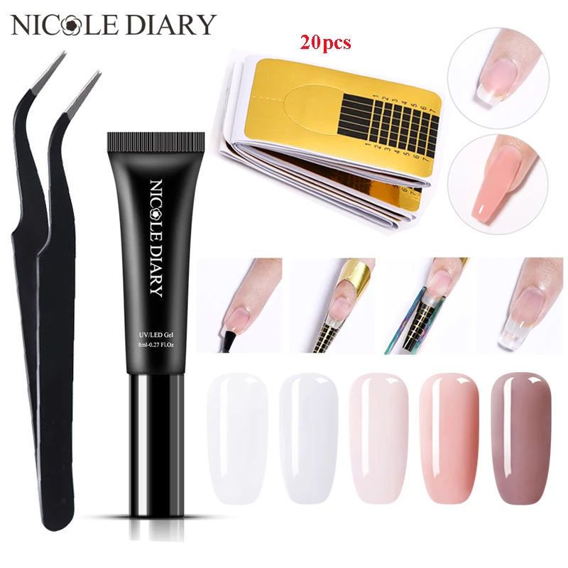 NICOLE DAIRY Quick Building Nail Gel Poly UV Gel For Finger Extension UV Gel Polish Forms for Nail Extension Manicur 6 colors