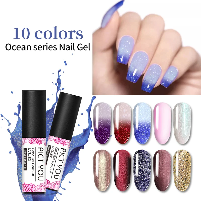 1 флакон 5 мл серия PICT YOU Ocean Гель-лак для ногтей Блестящий Блестки Синий Розовый замочить от ногтей УФ-Гель-лак маникюрный Гель-лак