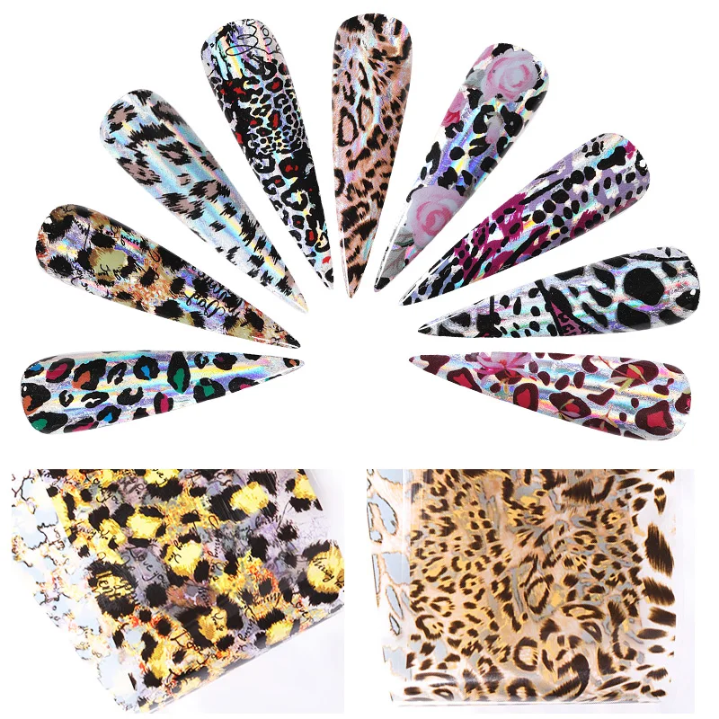 10 шт./компл. Фольга для ногтей леопардовая Фольга для переноса ногтей наклейки для дизайна ногтей аксессуары для ногтей DIY украшения ногтей