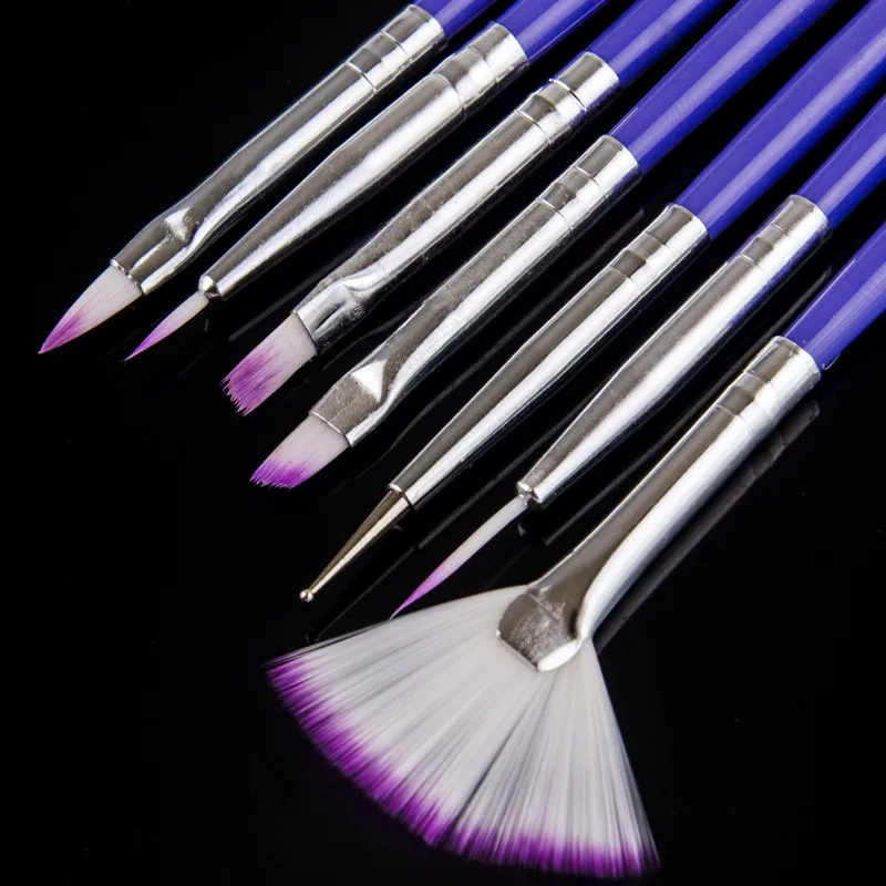 7 шт./компл. дизайн ногтей, ручка с кисточкой расставить лайнер живопись Вентилятор 3D Советы DIY Дизайн кисточки для дизайна ногтей украшения ...