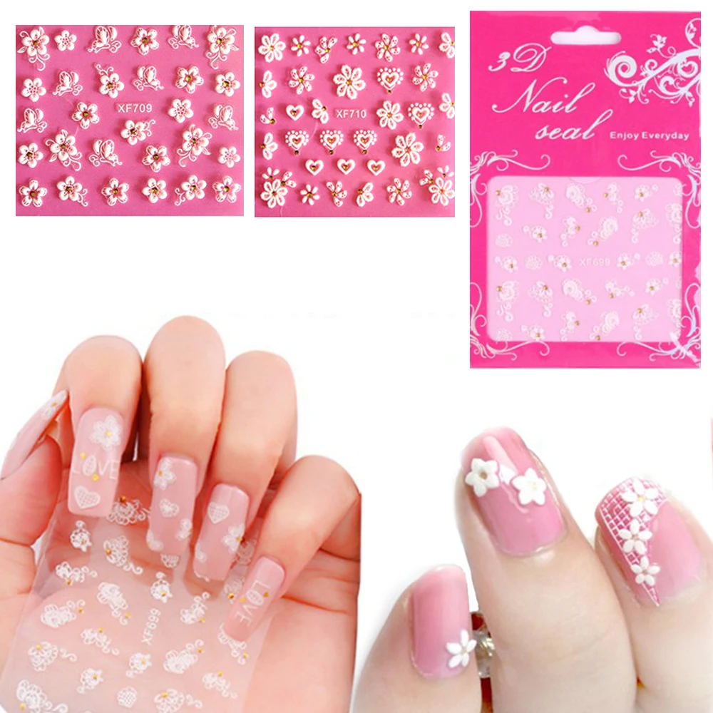Наклейки для ногтей 3D Серебряные украшения цветочный дизайн модные ногти Дизайн маникюрный дизайн задний клей для ногтей советы для женщин...
