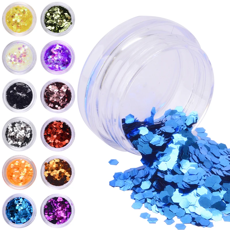 LCJ 1 бутылка шестигранной ногтей Блеск пайетки 3 мм Красочные блестка Советы Декор Маникюр Книги по искусству украшения 12 Цветов дополнитель...
