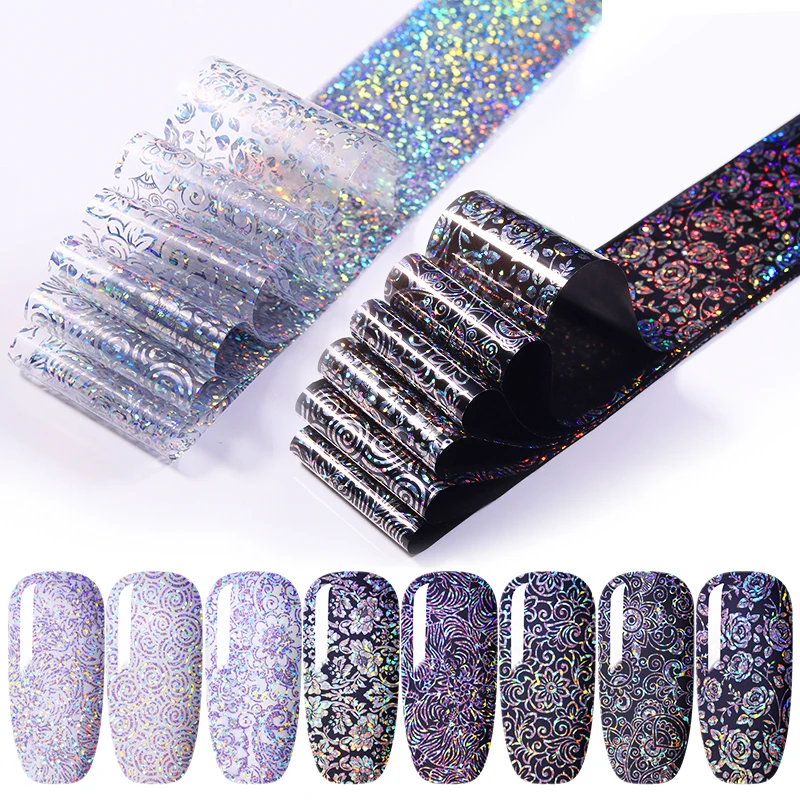 1 Лист Лазерная пленка для ногтей сверкающая белая черная цветы голографическая передача прозрачная; Нейл-арт Фольга наклейки украшения Со...