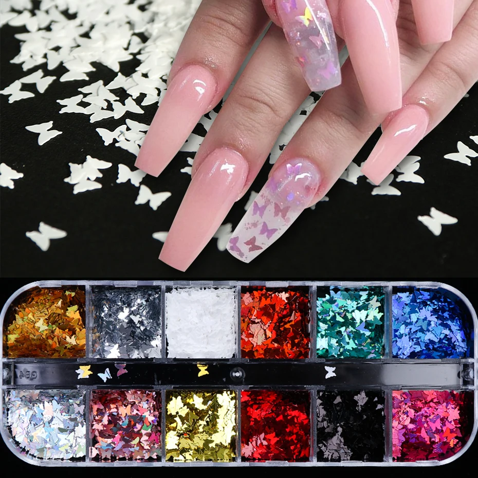 Смешанные голографические лазерные блестки бабочка для ногтей блестки зеркальные металлические хлопья украшения уголки для маникюра LY1558-1