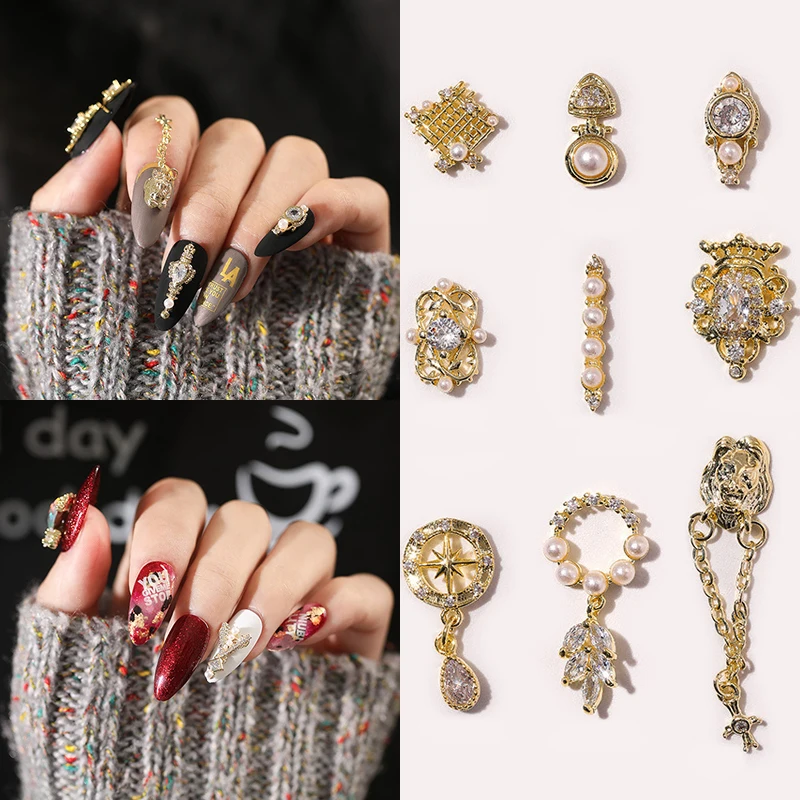 10 шт, новинка, Золотая Корона, 3D дизайн ногтей, украшения, сплав, для ногтей, амулеты, Стразы для ногтей, принадлежности для ногтей, сделай сам,...