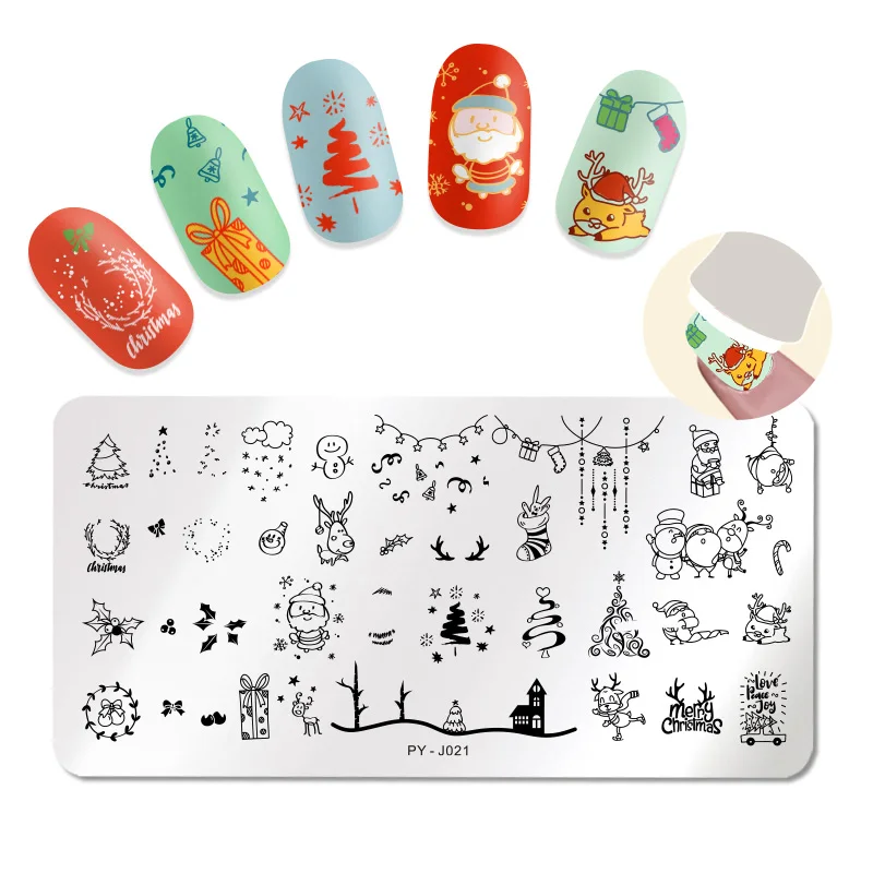 PICT YOU Рождество Новый год фестиваль полосатая линия ногтей штамповки пластины цветок листья Геометрическая пластина аксессуары для трафар...