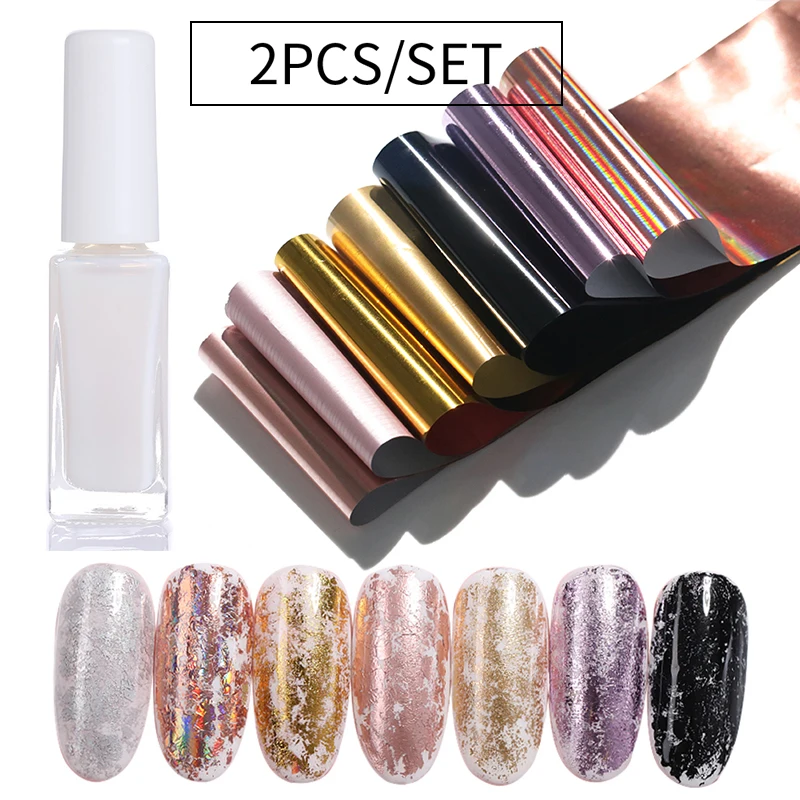 Мраморная фольга гель для ногтей набор 2 шт./лот звездное небо фольга s дизайн ногтей Клей прозрачный клей маникюрный лак