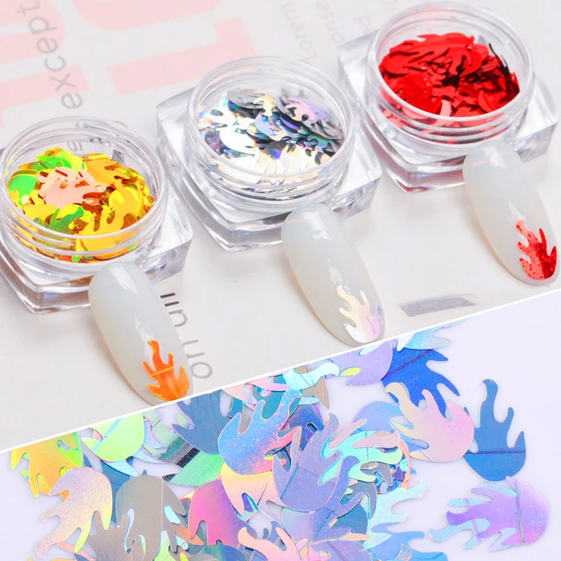 1 коробка голографические 3D украшения для дизайна ногтей сверкающие блестки Форма огня блестки Советы Маникюр DIY Дизайн ногтей