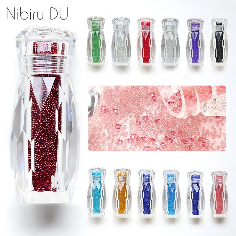 1 бутылка, прозрачные икры, бисер для ногтей, микро бисер, гравий, многоцветное страз, Кристальное стекло для 3D украшения для ногтей