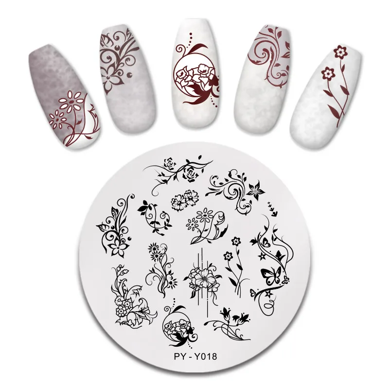 PICT YOU штампованные пластины для ногтей с цветочными узорами, дизайн ногтей, штамповка для дизайна ногтей, пластины для изображений, трафареты из нержавеющей стали, инструменты PY-Y018