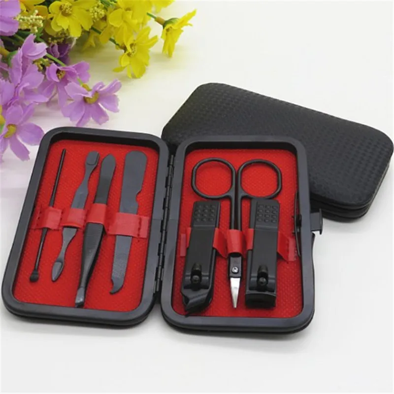 7 шт./компл. новые черные маникюрные машинки для ногтей из нержавеющей стали набор для педикюра портативный набор для гигиены путешествий тр...