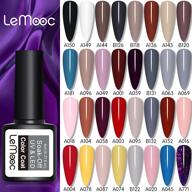 LEMOOC, 8 мл, Гель-лак для ногтей, 60 цветов, замачиваемый, для маникюра, полуперманентный УФ-лак, сделай сам, лак для ногтей, украшение для ногтей