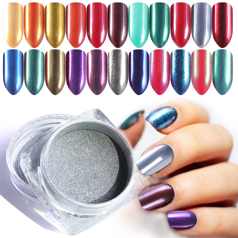Волшебное зеркало для ногтей, блестящий порошок хромового пигмента, пылезащитный, серебристый, золотой, красный, блестки, хлопья для маникюра, Holo, украшения ногтей, SADP01-16