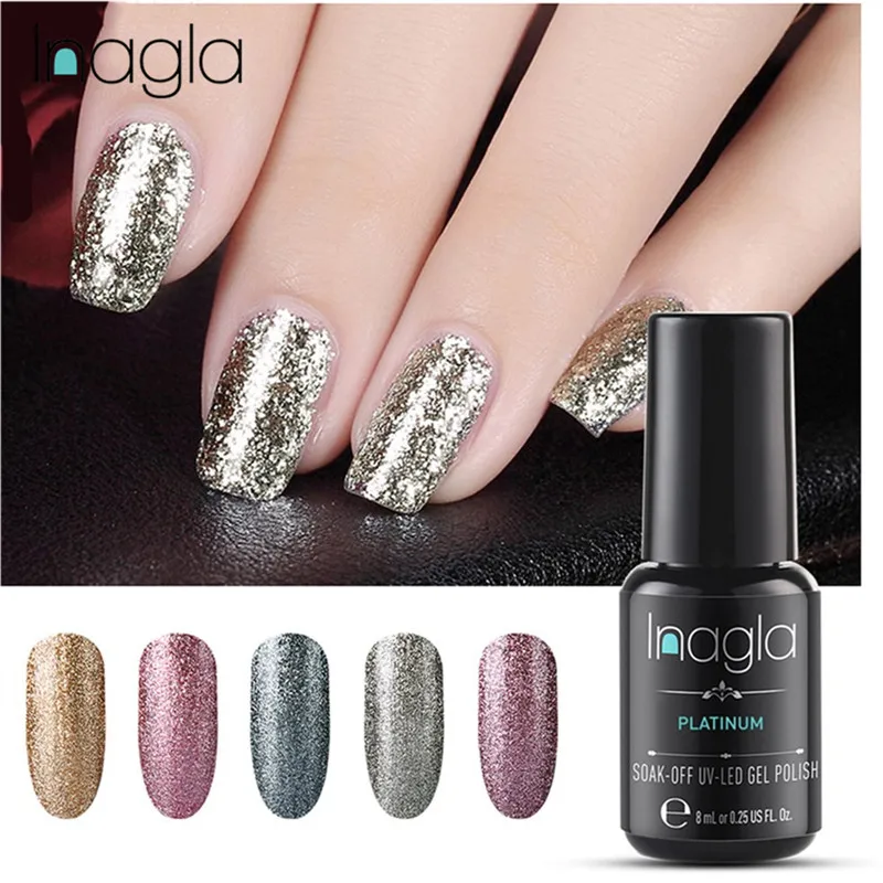 Inagla 8 мл Платиновые Блестки УФ-гель для ногтей долговечный светодиодный светильник гель Лаки гель Топ базовый растворимый лак для ногтей ге...