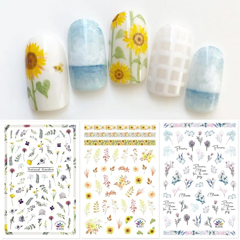 1 лист, 3D наклейки для ногтей, клейкие наклейки, цветы, листья, геометрия, фрукты, десерт, дизайны, слайдеры, тату, маникюрные украшения