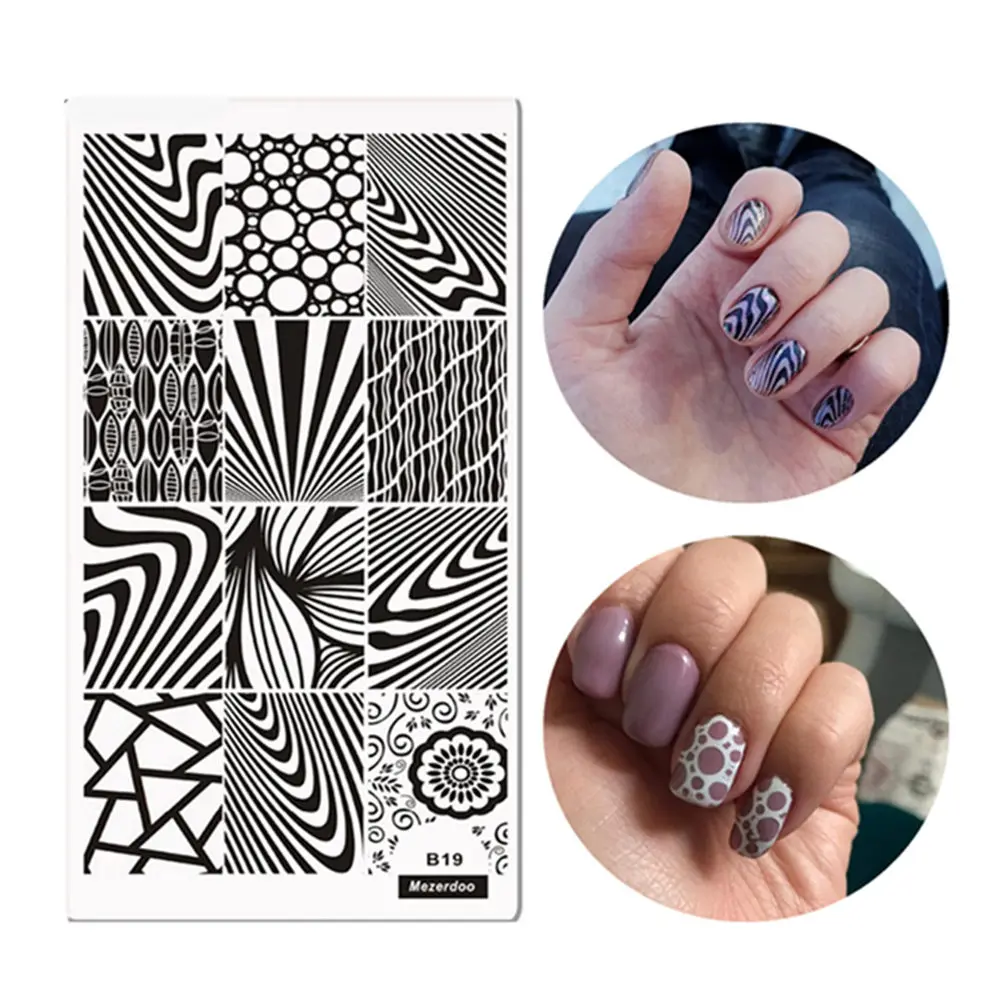 Классическая линия Полоски зебры узорами, дизайн ногтей штамп шаблон и форма для ногтей 12*6 см отделка под дерево Стиль штамповка плиты Mezerdoo ...