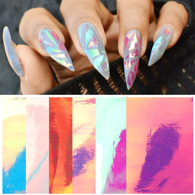 3D наклейки для ногтей винилы красочные самоклеющиеся стеклянные бумажные украшения переводные наклейки для ногтей Обертывания для дизайна ногтей аксессуары для дизайна своими руками