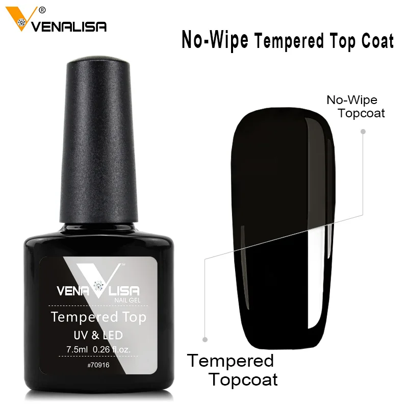 Верхнее покрытие для ногтей из закаленного стекла, VENALISA, для маникюра, для маникюра, супер глянцевая, без протирания, усиленное покрытие, УФ-Гель-лак, упрочненный, твердый верхний гель