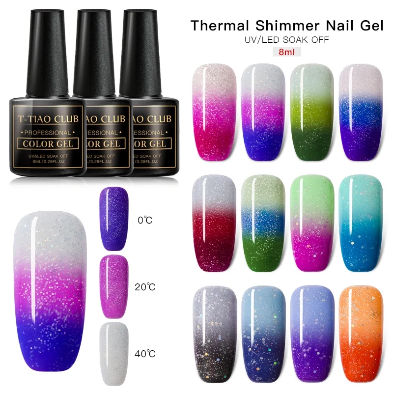 T-TIAO клубный Радужный термальный Гель-лак для ногтей Температура Изменение цвета голографический блеск температура личная гигиена лак
