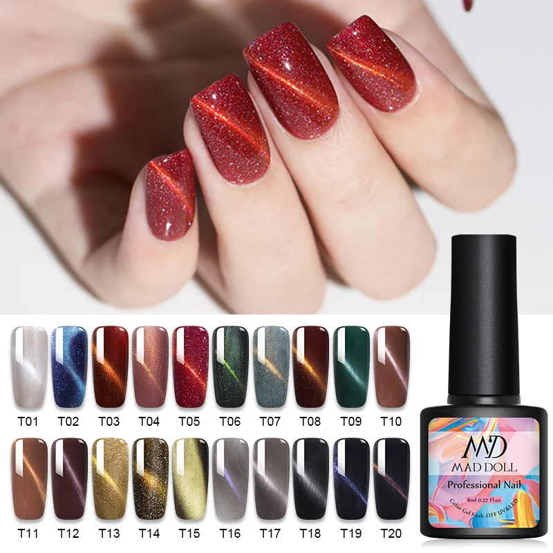 MAD DOLL 8 мл мигающий Гель-лак для ногтей кошачий глаз впитывающийся Гель-лак для нейл-арта Magnicure гель для ногтей кошачий глаз УФ-гель лак