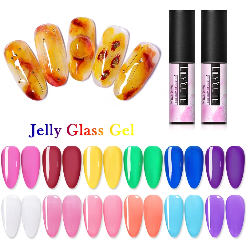 LILYCUTE 5 мл УФ-гель для ногтей стеклянный Желейный гель Розовый Блестящий полупрозрачный отмачиваемый УФ-Гель-лак Сделай Сам Гель-лак для ногтей