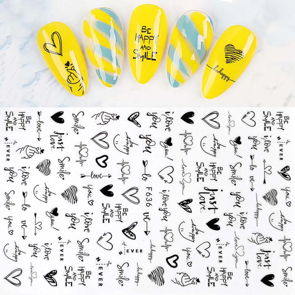 1 шт. черные линии 3D наклейки для дизайна ногтей листья цветок панда сердце шаблон клейкие переводные наклейки Маникюр украшение для ногтей